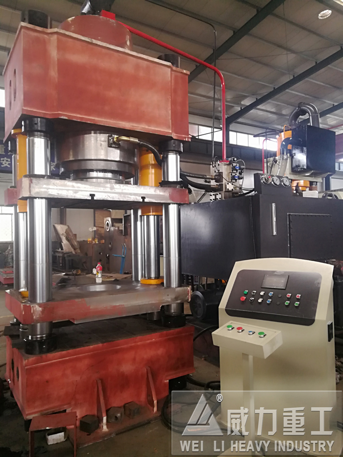 山東威力這個630噸四梁四柱液壓機客戶試機: